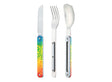 • Includes a large spoon, a 4-pronged fork, and a knife with a micro-serrated blade
