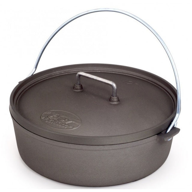 Experience the convenience and performance of the GSI Outdoors Dutch Oven 10". Crafted with innovative hard-anodized construction, this camping essential is made from durable, highly conductive cast aluminium. Heating up quickly and evenly, this Dutch oven won't rust like traditional cast iron cookware, making it ideal for outdoor adventures. Weighing just one-third of cast iron, it is easy to transport and handle over an open fire.