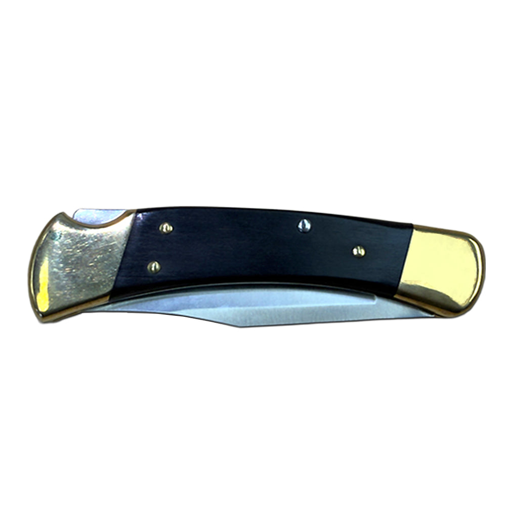 The handle is made from authentic Crelicam ebony wood with solid brass bolsters, giving the knife a timeless and classic look. Each knife includes a black genuine leather sheath for easy carry and protection. Proudly made in the USA, every Buck 110 is backed by the legendary Buck Forever Warranty, guaranteeing lasting performance and quality.