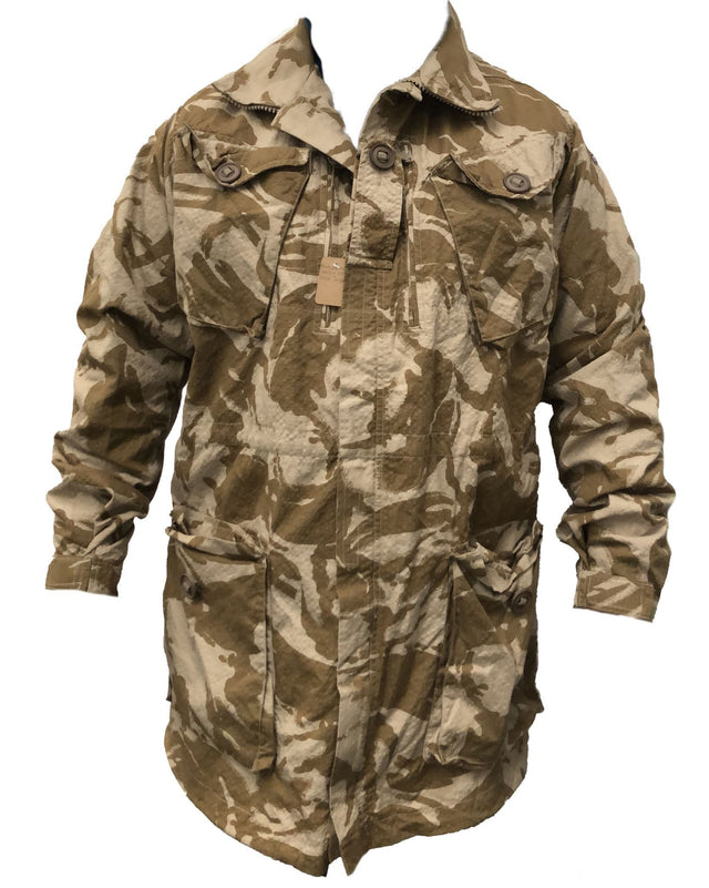 These British Army Desert DPM Ripstop Field Jacket's are the ultimate in hard wearing uniform. The jacket is from the rip stop fabric which makes it much stronger than the standard desert DPM shirt. It has 4 large front dump pockets, 2 on the waist and 2 on the chest, 2 zipped vertical map pockets and the front rank tab. It has zipped opening with velcro windproof flap. It has a drawstring wait and velcro wrist cuffs. It does have button holes to enable you to button on an aftermarket hood if you wished to.