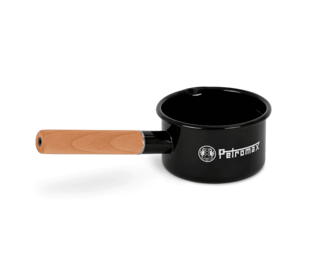 Low in weight yet tough and durable is the Petromax 0.5L Enamel Pan - Black which is a must have when cooking outdoors. Whether you are going camping or hiking, this pan from Petromax is perfect for breakfast, lunch and dinner. Constructed from tough and durable enamelled steel, your pan will not rust or corrode and features a scratch free surface which also makes it super easy to clean! It also includes a wooden handle for easy handling over the fire as well as a scale on the inside to aid measuring of ingredients.