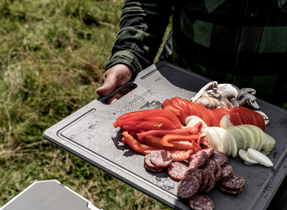 Complement your outdoor cooking setup by pairing this chopping board with Petromax knives to prepare your meals efficiently. The divider feature supports separate storage of delicate foods, and it works in harmony with the Dry Rack Baskets, which fit inside the cooler box alongside the board.