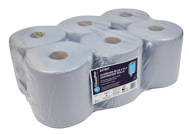 Blue 2ply Centrefeed Paper Rolls - 6 Pack