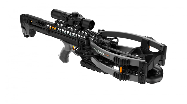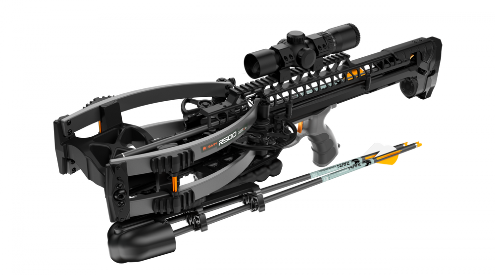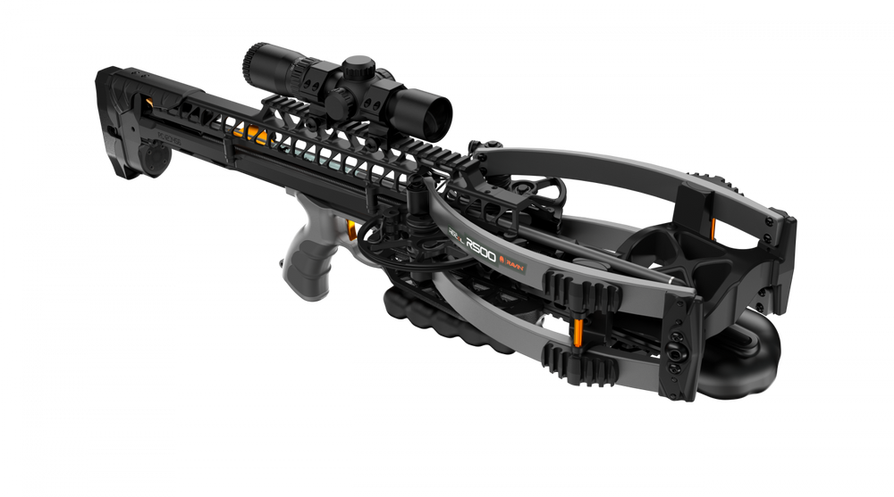 Finished in an elegant slate grey, the Ravin R500 combines compact design with incredible power. Its manual VersaDrive Cocking System offers smooth, reliable operation with a minimal 17 lbs draw force, making cocking and uncocking effortless. With an ultra-narrow profile of just 3.6 inches axle-to-axle when cocked, this crossbow is built for agility in the field while maintaining devastating stopping power.