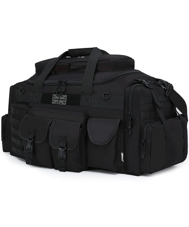 The Kombat UK Saxon Holdall Bag in black is a versatile and durable travel companion designed to meet the needs of outdoor enthusiasts and travellers alike.