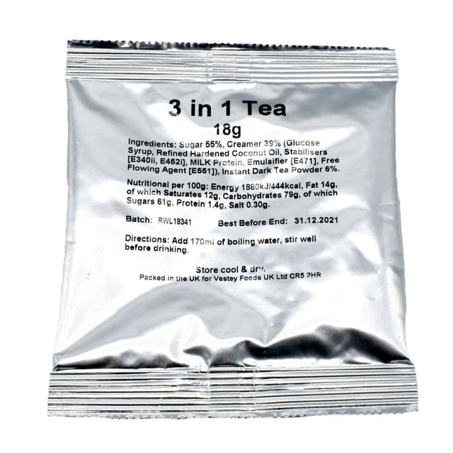 These British Army 3 in 1 Tea Sachets are perfect for a hot drink when out in the field. With sugar, milk and tea all included you simply need to pour the sachet into boiling water for a delicious drink when on the go.