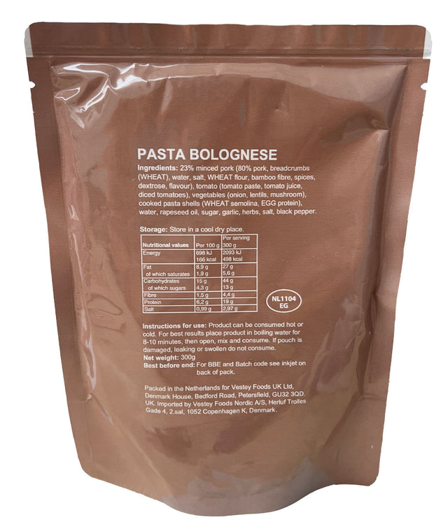 A family favourite which everyone is sure to enjoy, the British Military Ration Main Meal Pouch - Pork Pasta Bolognese 300g are great to add to your bug out bag, long term storage supplies or outdoor expeditions. These pouches were originally designed for the British military, meaning they are perfectly nutritionally balanced for survival purposes. You can eat them cold straight from the bag or alternatively boil in the bag for a quick and easy meal within minutes!