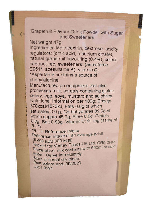 British Military Ration Pack Accessory - Grapefruit Fruit Flavour Drink Powder 45g